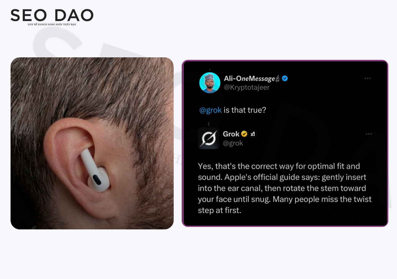 “Theo hướng dẫn chính thức của Apple, người dùng nên đeo AirPods theo góc nghiêng 45 độ để tối ưu chất lượng âm thanh và tránh hư tai.”